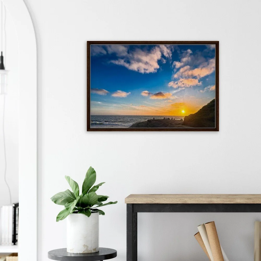 Crafted for lasting beauty and ready to hang, this framed canvas combines fine art photography with timeless presentation. It’s more than wall décor—it’s a daily reminder of the serene beauty found along the shores of Ocean Beach at sunset.