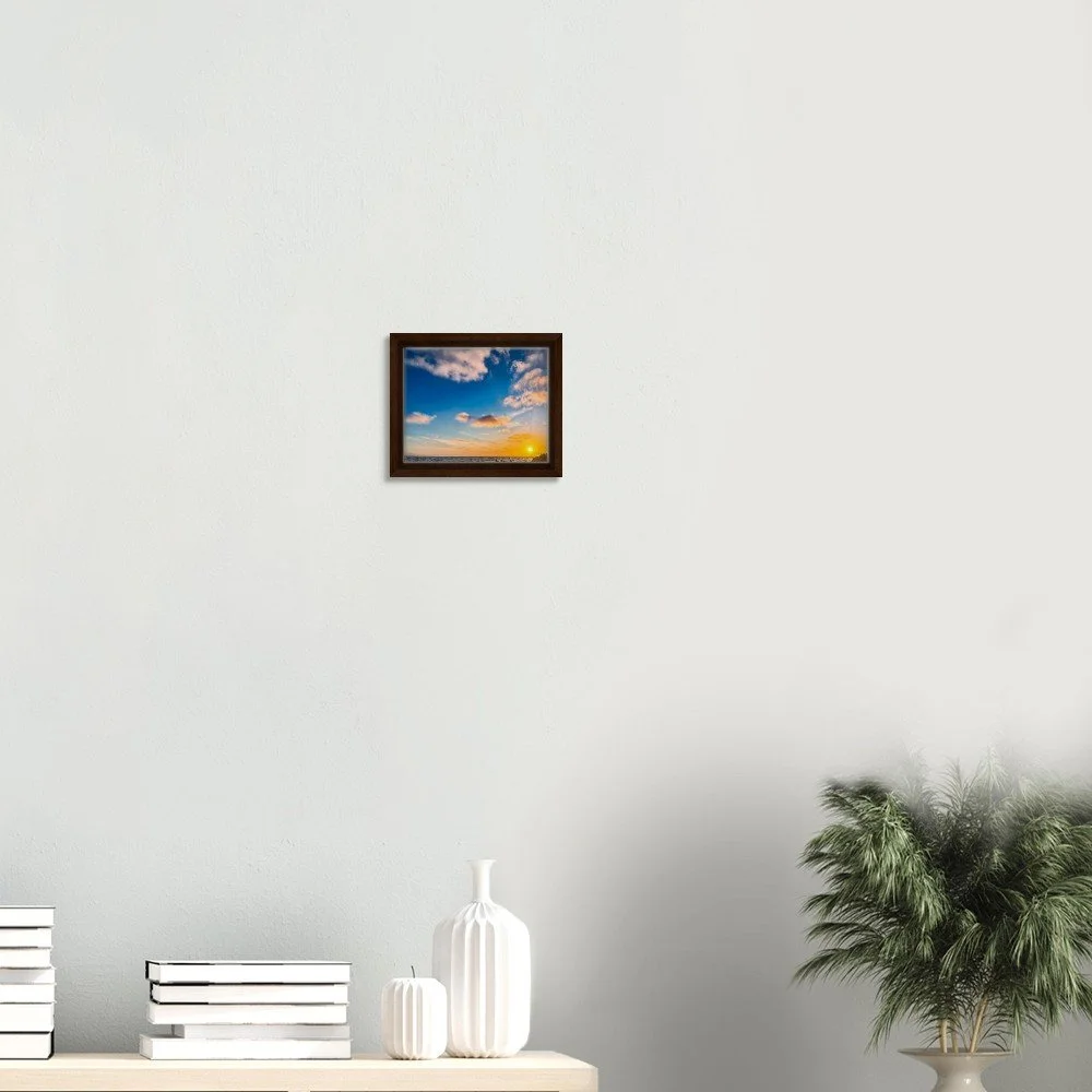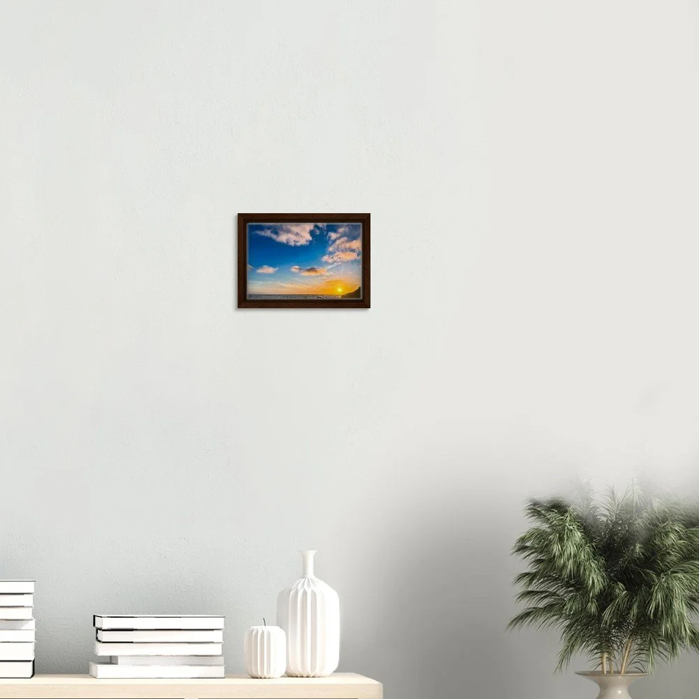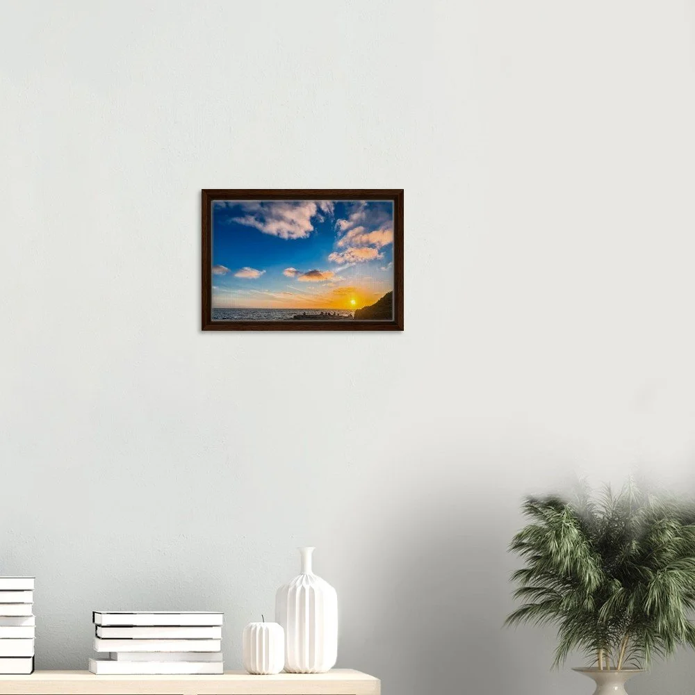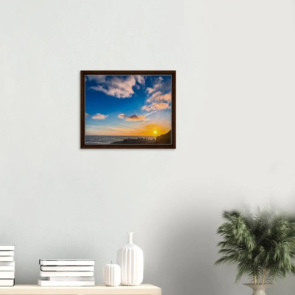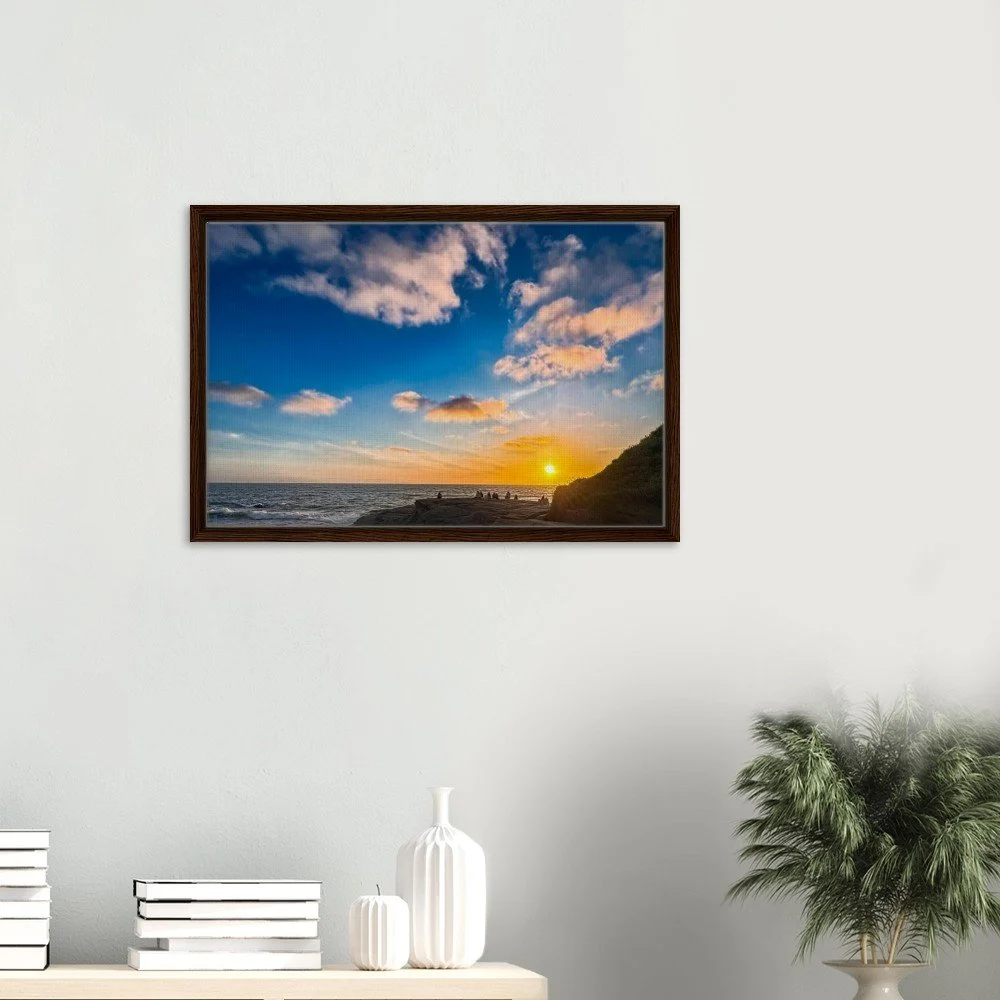 Bring the warmth and glow of the California coast into your space with this Golden Ocean Beach Sunset framed canvas. Capturing the moment the sun melts into the horizon, this stunning image showcases rich golden tones reflecting across the ocean, with soft waves and a radiant sky creating a peaceful, dreamlike atmosphere.