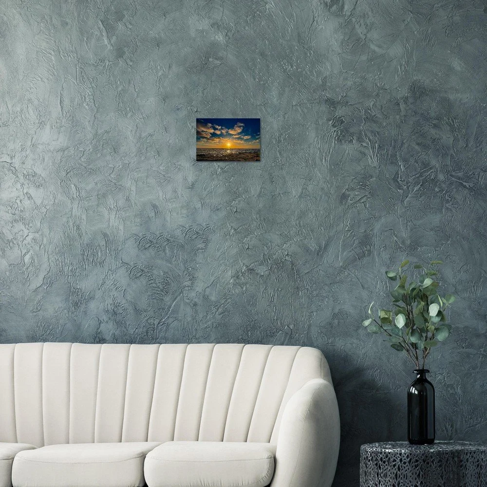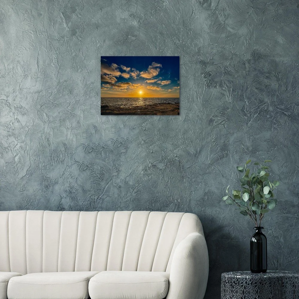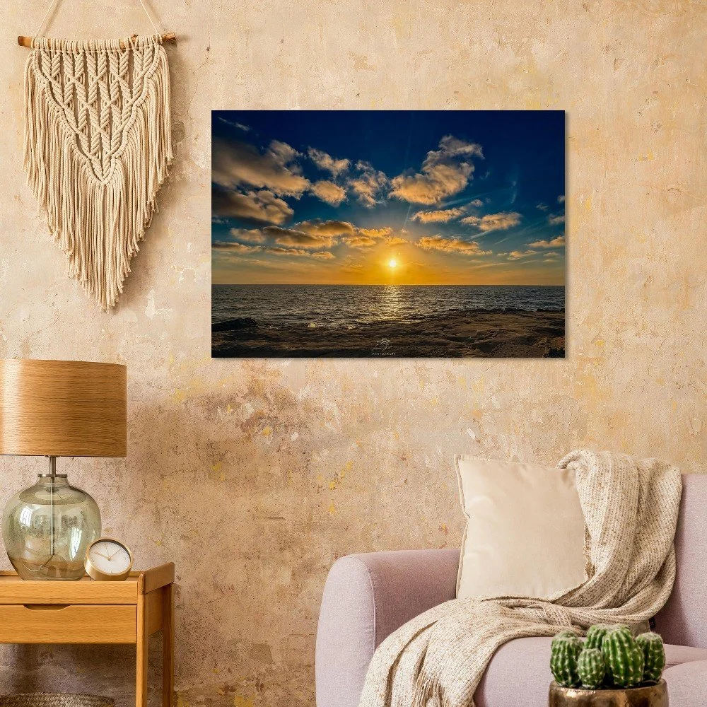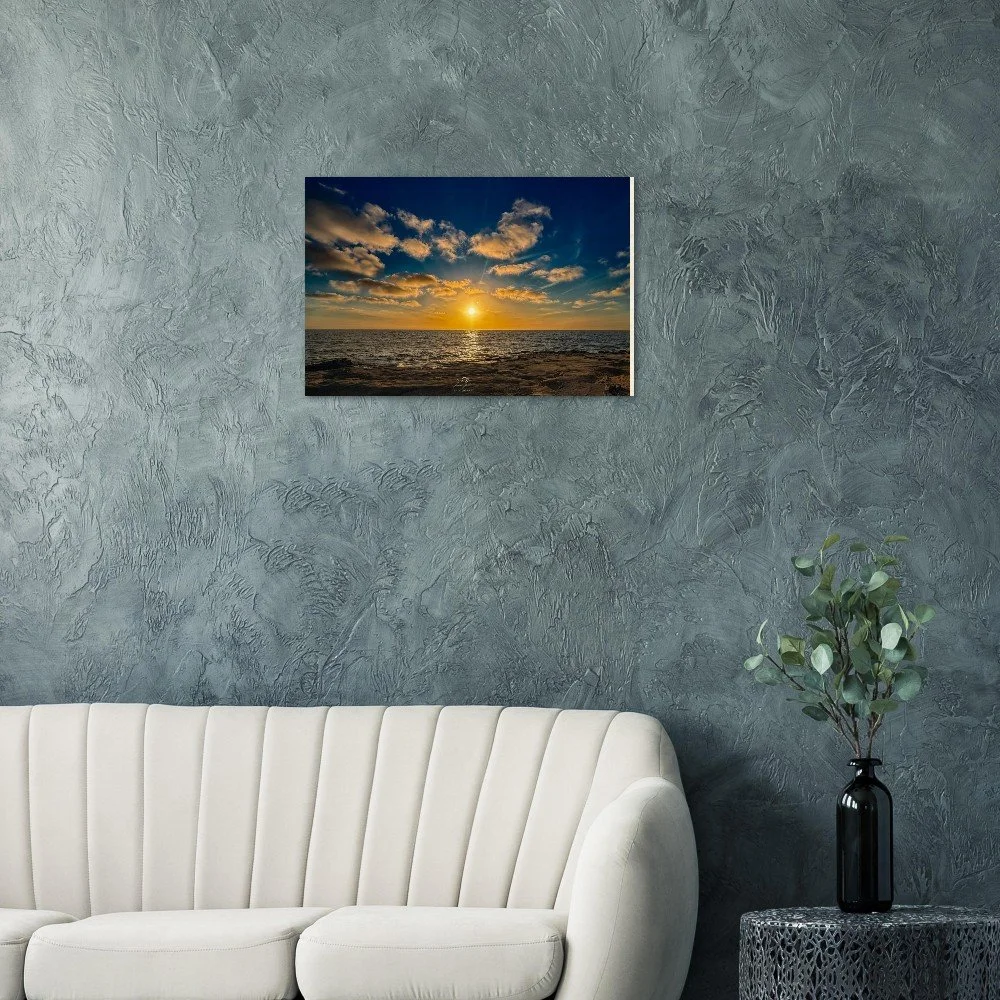 Celebrate the magic of Ocean Beach with a piece that blends fine art photography and natural texture—turning a fleeting sunset into a lasting, inviting centerpiece.